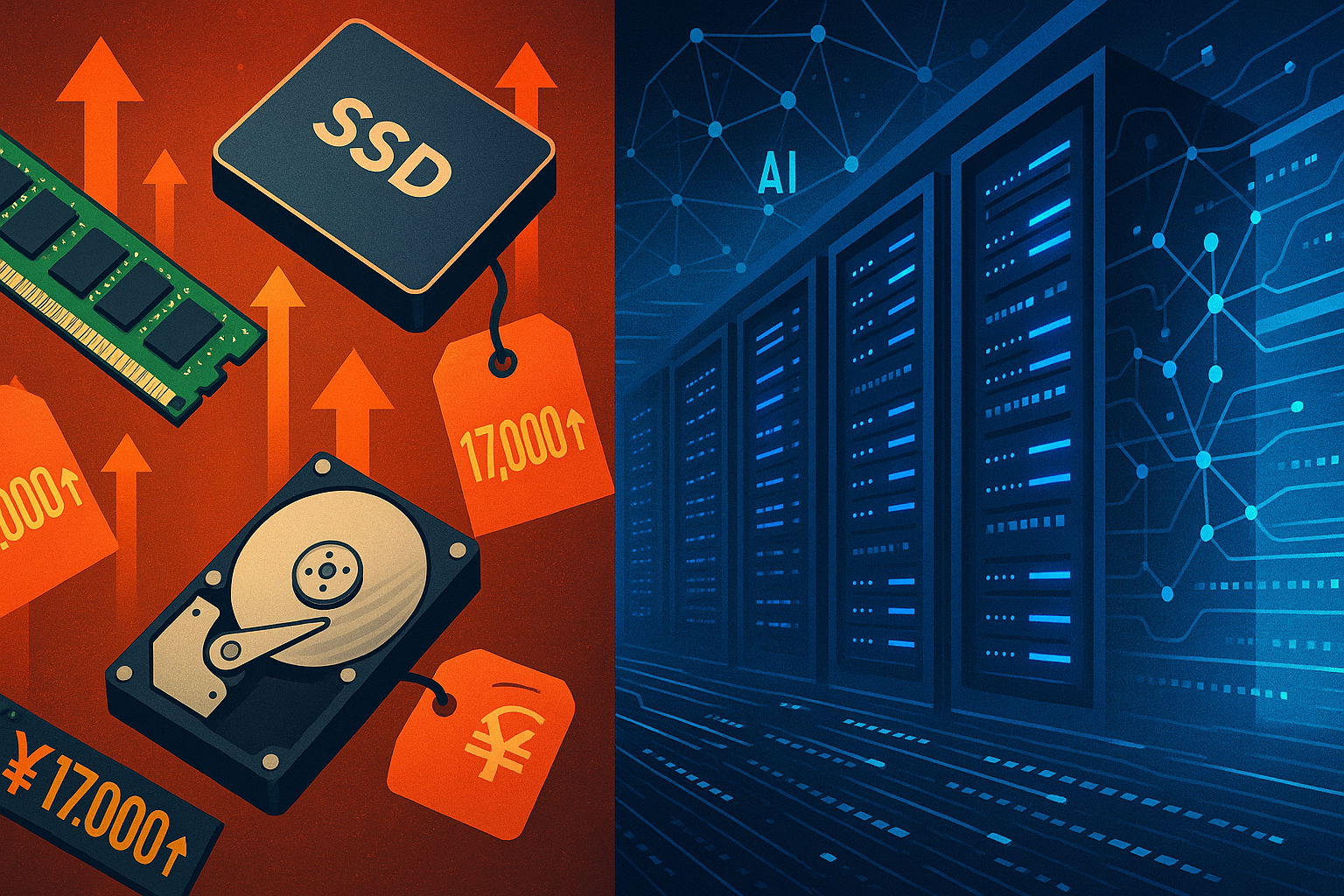 記事まとめ PCパーツの価格が急激に高騰している – 2025年11月に入り、メモリやSSD、HDDの価格が急上昇し、一...